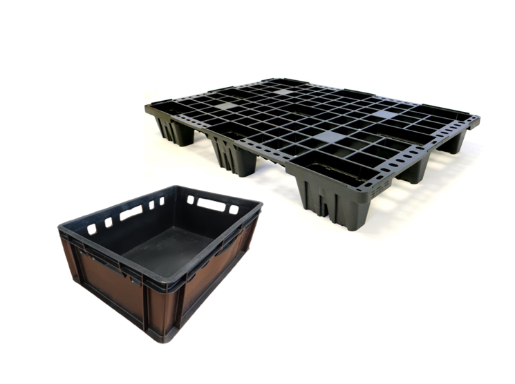 Utilisation de matières recyclées pour la production de palettes et bacs en 100% recyclées